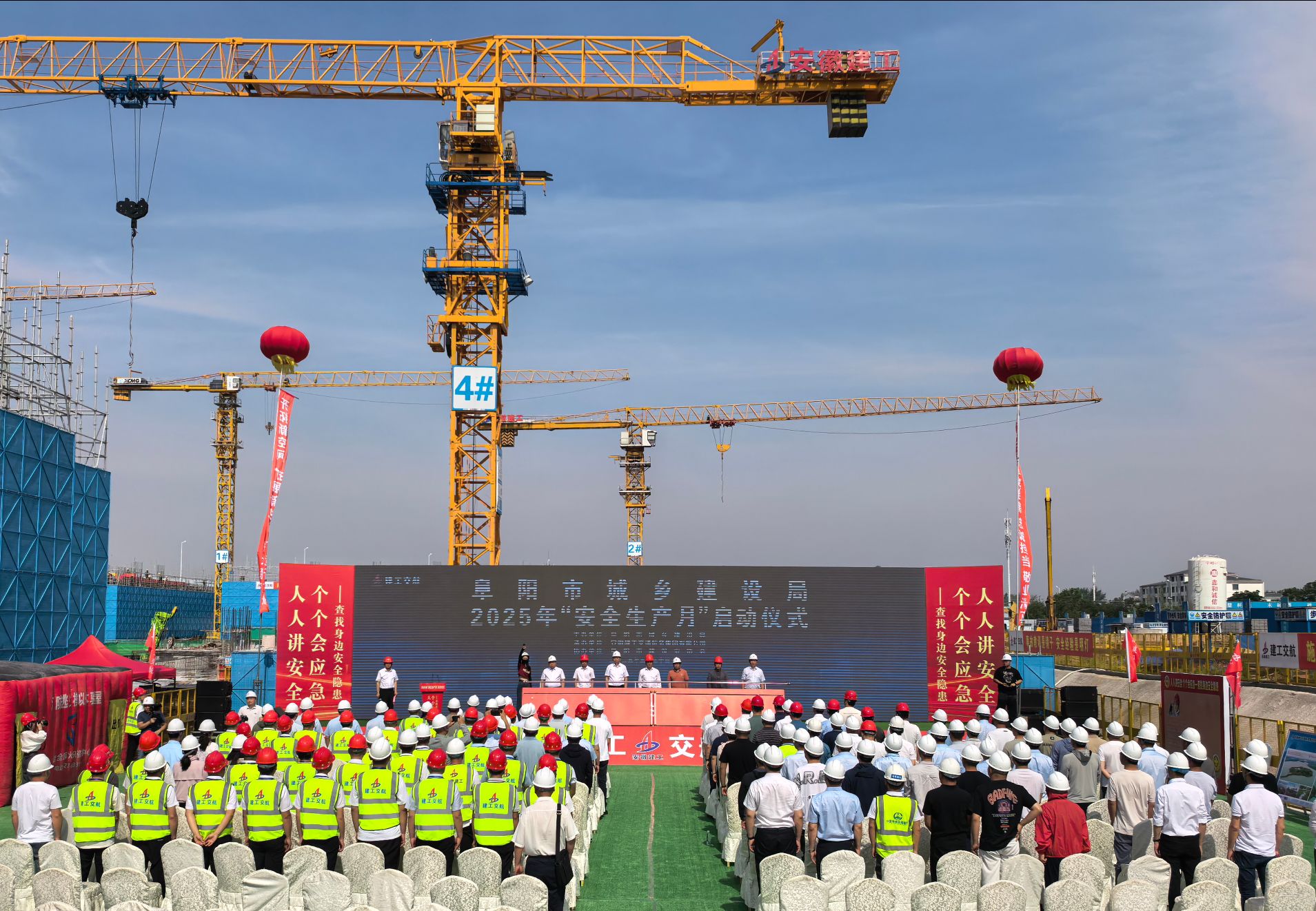 5月30日上午,在建工交航阜阳智谷项目施工现场,阜阳市城乡建设系统2025年“安全生产月”启动仪式暨项目观摩活动隆重举行。
