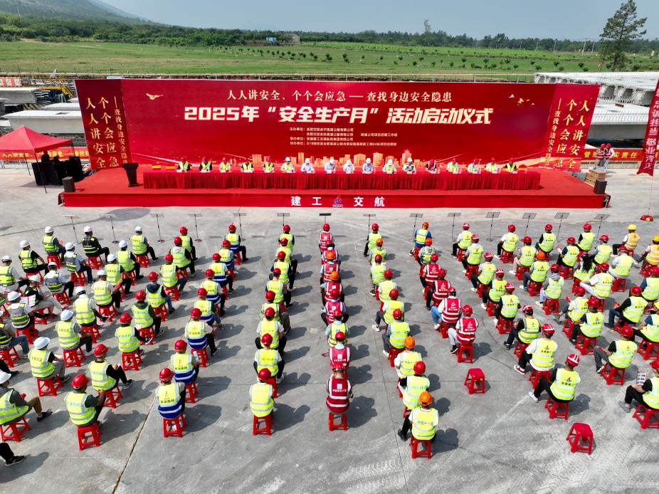 为深入贯彻习近平总书记关于安全生产的重要论述,扎实推动“人人讲安全、个个会应急—查找身边安全隐患”主题活动落地见效,6月3日上午,合宁公司2025年“安全生产月”启动仪式在建工交航S18宁合高速04标举行。
