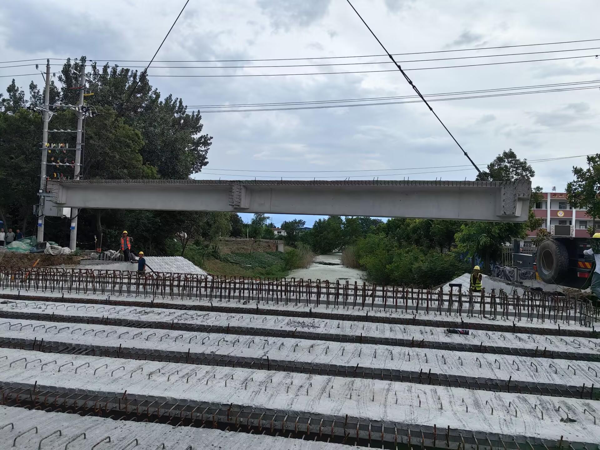本次架设的16米预应力混凝土T梁采用“工厂预制+精准架设”模式。针对施工路段临近学校、交通压力大的情况,项目部提前部署交通管控方案,保障了吊装作业的顺利进行。