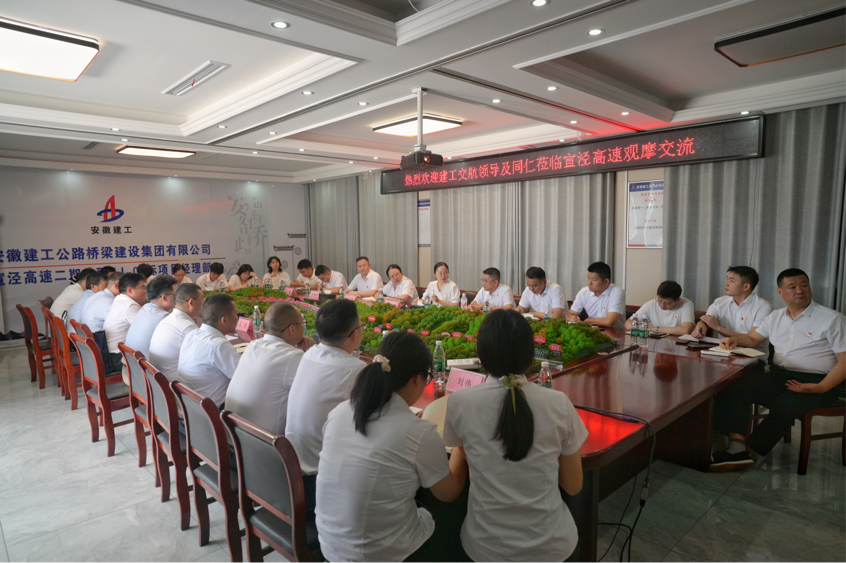 随后,前往建工路桥宣泾高速项目驻地,观看项目建设宣传片,听取项目党建工作介绍。该项目秉持“党建引领项目建设”理念,将党支部建在工地,引领党员在技术攻关、安全生产等关键环节积极担当作为。