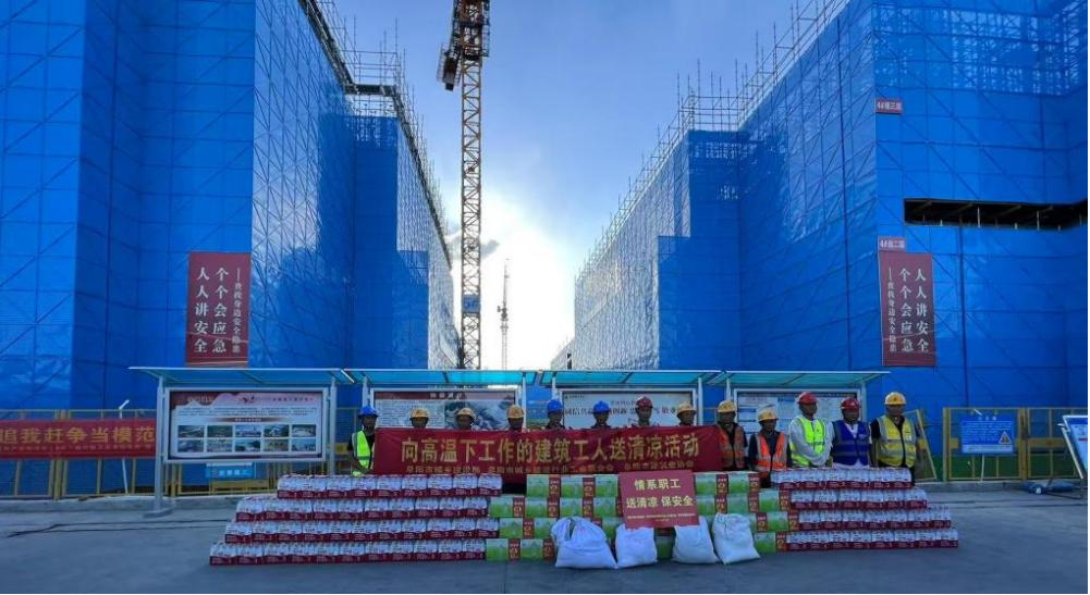 常利华听取了项目经理关于安全生产管理、防暑降温措施落实等情况的汇报,亲切询问工人作业时间调整、避暑设施配备等安排情况。他亲手将矿泉水、绿茶等防暑物资送到工人手中,反复叮嘱高温作业要将安全健康放在首位,严格错峰施工,同时要求项目部细化防暑举措,合理调配人力物力,保障工人健康与安全。