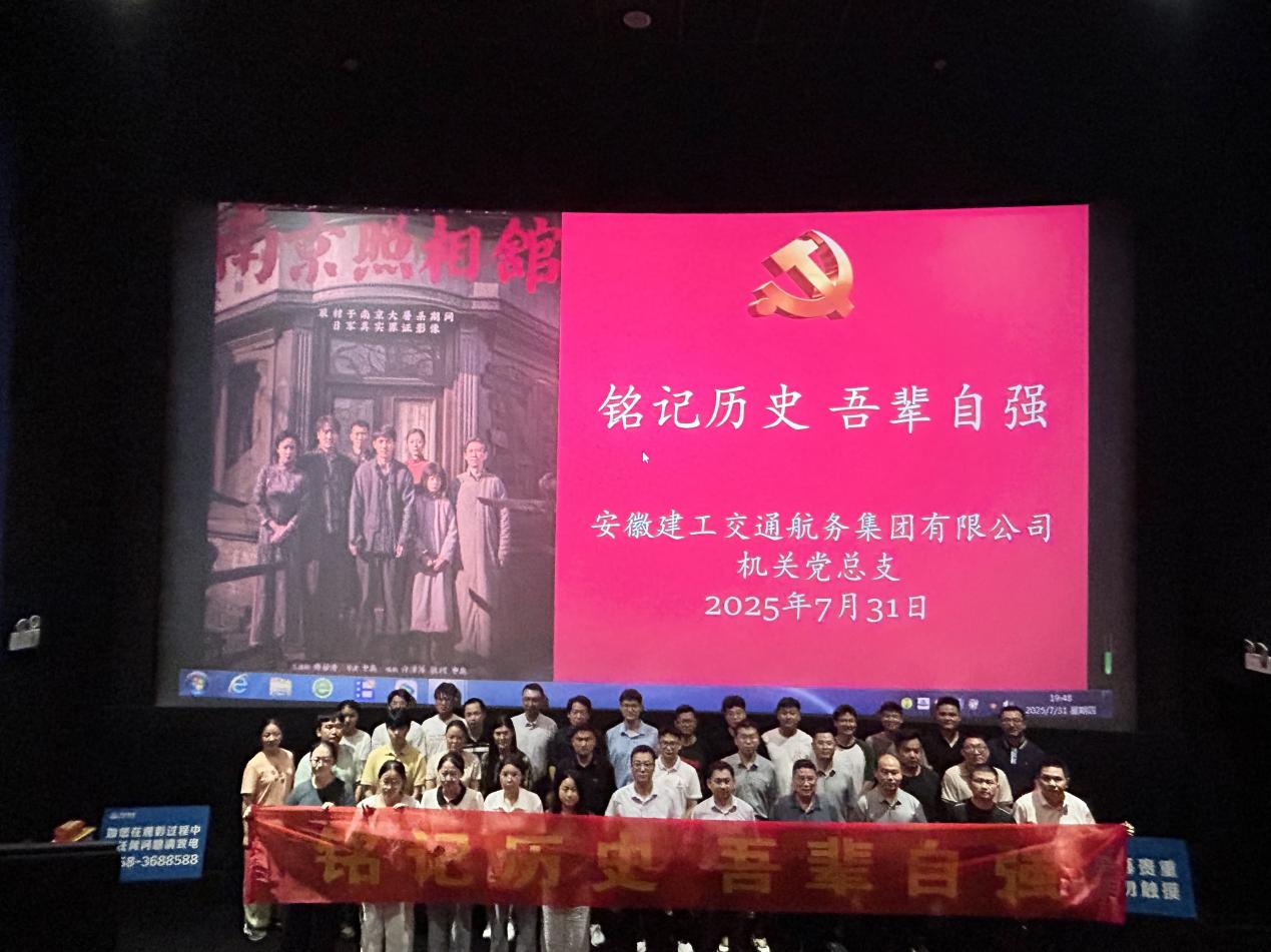 7 月 31 日,机关党总支联合港航水利公司党支部共同开展主题党日活动,组织党员和职工群众观看影片《南京照相馆》,旨在纪念中国人民抗日战争暨世界反法西斯战争胜利 80 周年,弘扬爱国主义精神。