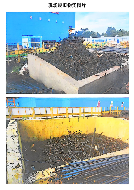 1.阜阳市颍州区智谷产业园项目(B区):废旧钢筋约4吨,钢筋加工棚部件0.3吨