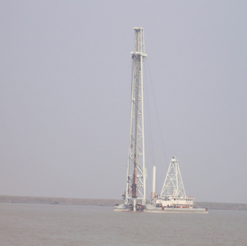 水上施工设备--国内先进的三桩定位抓斗挖泥船