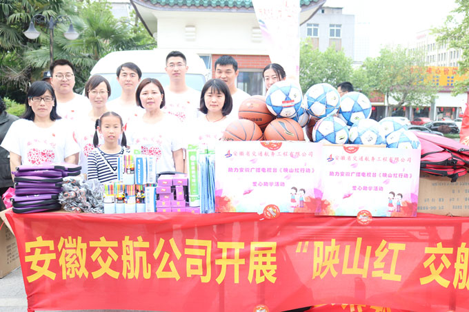 4月21日上午,安徽交航公司联合安徽经视“映山红”栏目组开展“爱心助学,交航在行动”捐赠助学主题党日活动。活动开始时,虽然天公不作美,下着雨,却难以阻挡交航公司党员职工的爱心传递,大家带着真挚的爱,满载着精心准备的崭新画笔、画板、篮球、足球、羽毛球、乒乓球、跳绳等文体用品,冒雨来到省图书馆捐赠现场,这些文体用品将通过“映山红”栏目组捐赠给大山里的孩子们,让那些贫困地区的孩子们感受到来自国有企业的温暖与关爱。