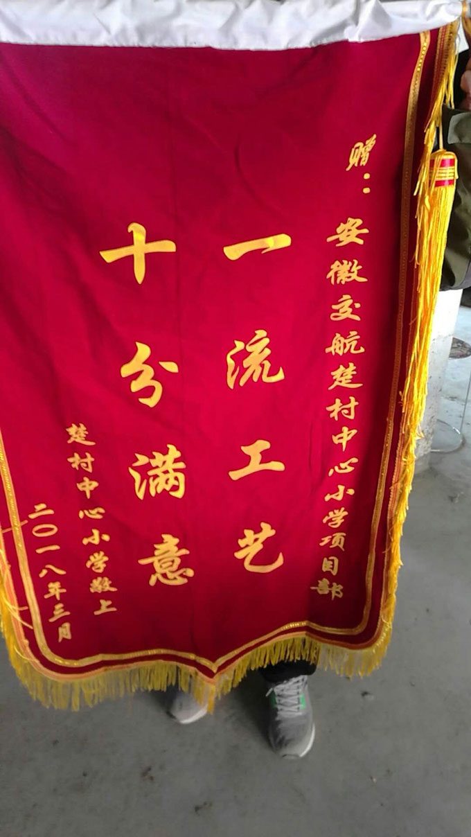 3月16日,蒙城楚村中心小学校长郏峰一行专程赶往安徽交航蒙城楚村中心小学项目部,向项目部赠送印有“一流工艺,十分满意”的锦旗,并对项目部的辛勤付出表示由衷的感谢。