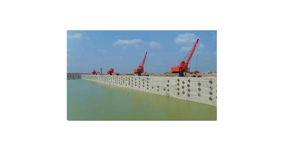 该工程设 17 个 500t 级重力式码头泊位,其 中散货码头 10 个、件杂货码头 7 个,年吞吐量 为 8000000t,为千里淮河第一港。