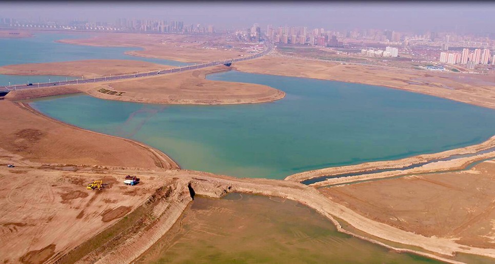 总治理面积 36100 亩,总投资 34.5 亿元,项 目工期为两年(2016 年—2017 年)。治理 目标为打造中湖湿地公园,建成淮水北调中 心水库。工程采用超前动态控制工艺,监管 采用 GPS—RTK 实时动态图根控制,辅以无 人机航空摄影测量技术,达到高精度实景的 数字化管理目标。工程竣工后,将形成可利 用土地 24500 亩,水域 11600 亩,蓄水库容 36800000m³。 一座生态优美、 风光迷人的 中湖公园将于南湖公园、东湖公园交相辉映, 实现全市人民多年的夙愿!